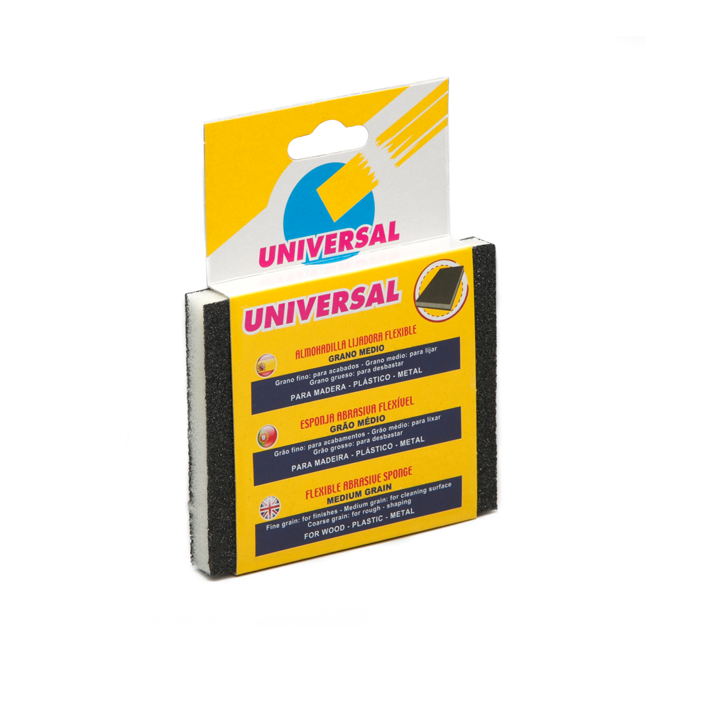 Almohadilla lijadora flexible de grano medio presentada con cartón expositor. Este accesorio es el equilibrio perfecto entre desbaste y acabado, diseñado para trabajar sobre madera, plástico y metal. Su estructura esponjosa permite adaptarse a superficies curvas e irregulares, siendo un elemento esencial de BRICOLAJE y mantenimiento.