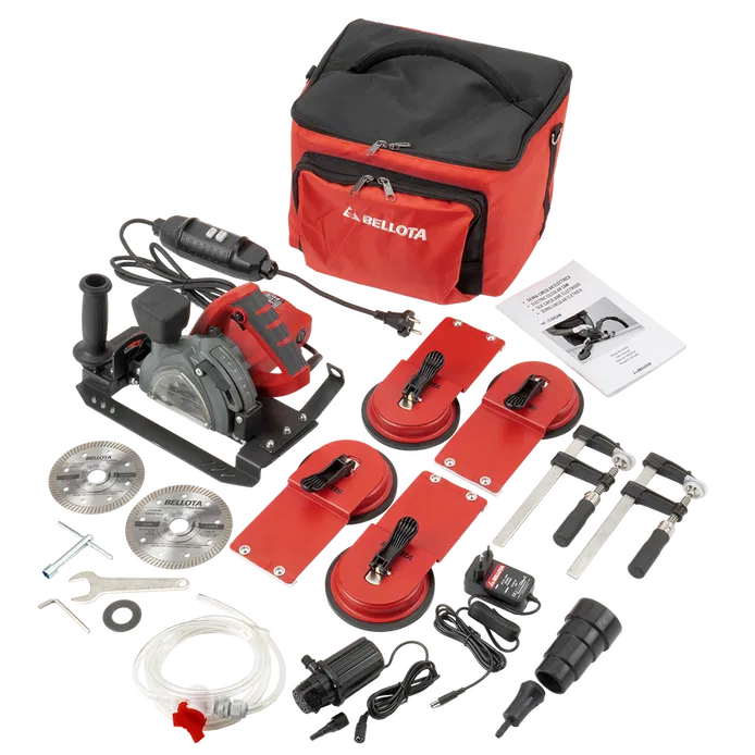 - Corte Húmedo: Incluye un KIT para corte húmedo (bomba de agua y manguera con regulador de caudal) para evitar el polvo y enfriar el disco.