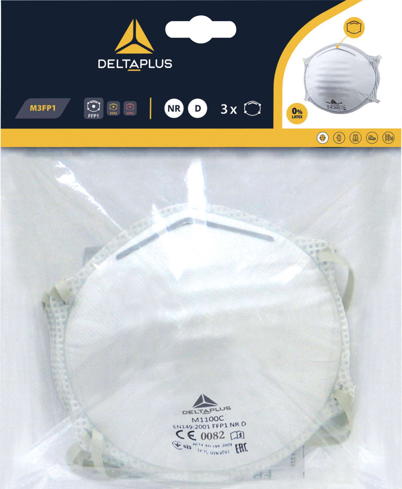Material : Sintético no tejido – Moldeado | Lámina nasal : Acero | Sistema de ajuste : Bridas