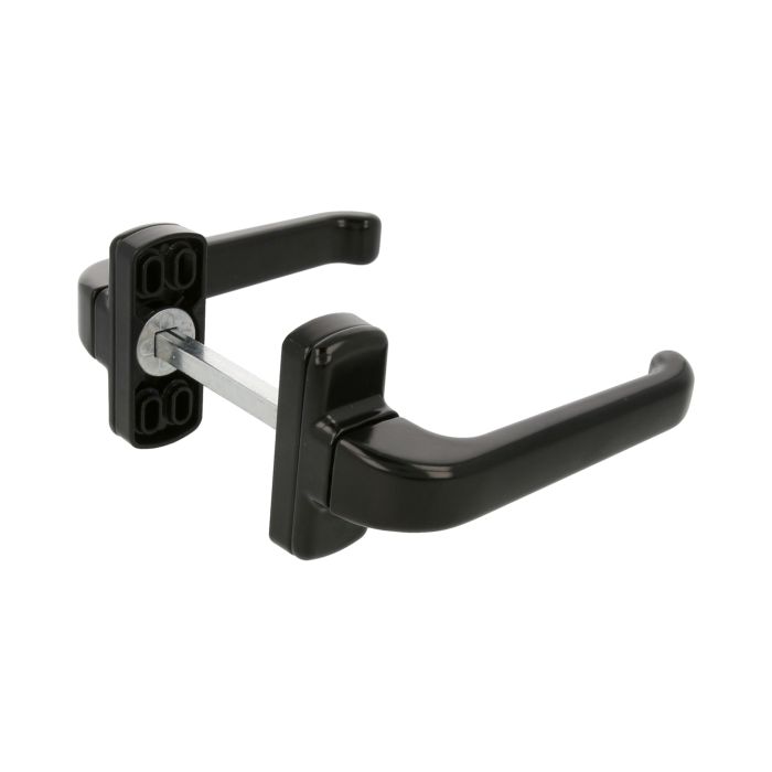 Juego de manillas EPSILON fabricado en aluminio con acabado en negro mate. Ideal para ventanas, balconeras o puertas correderas. Diseño moderno y resistente.