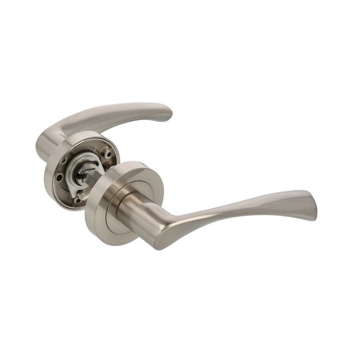 El Juego de Manillas ISHI Níquel Cepillado es ideal para puertas de interior que buscan un diseño fluido y contemporáneo. Fabricadas en aluminio, estas manillas son resistentes y ofrecen un excelente tacto. El acabado en níquel cepillado proporciona una estética elegante, con una roseta redonda que asegura una instalación discreta y pulcra. Es un herraje de carpintería de fácil montaje que actualiza cualquier estancia con su estilo vanguardista.