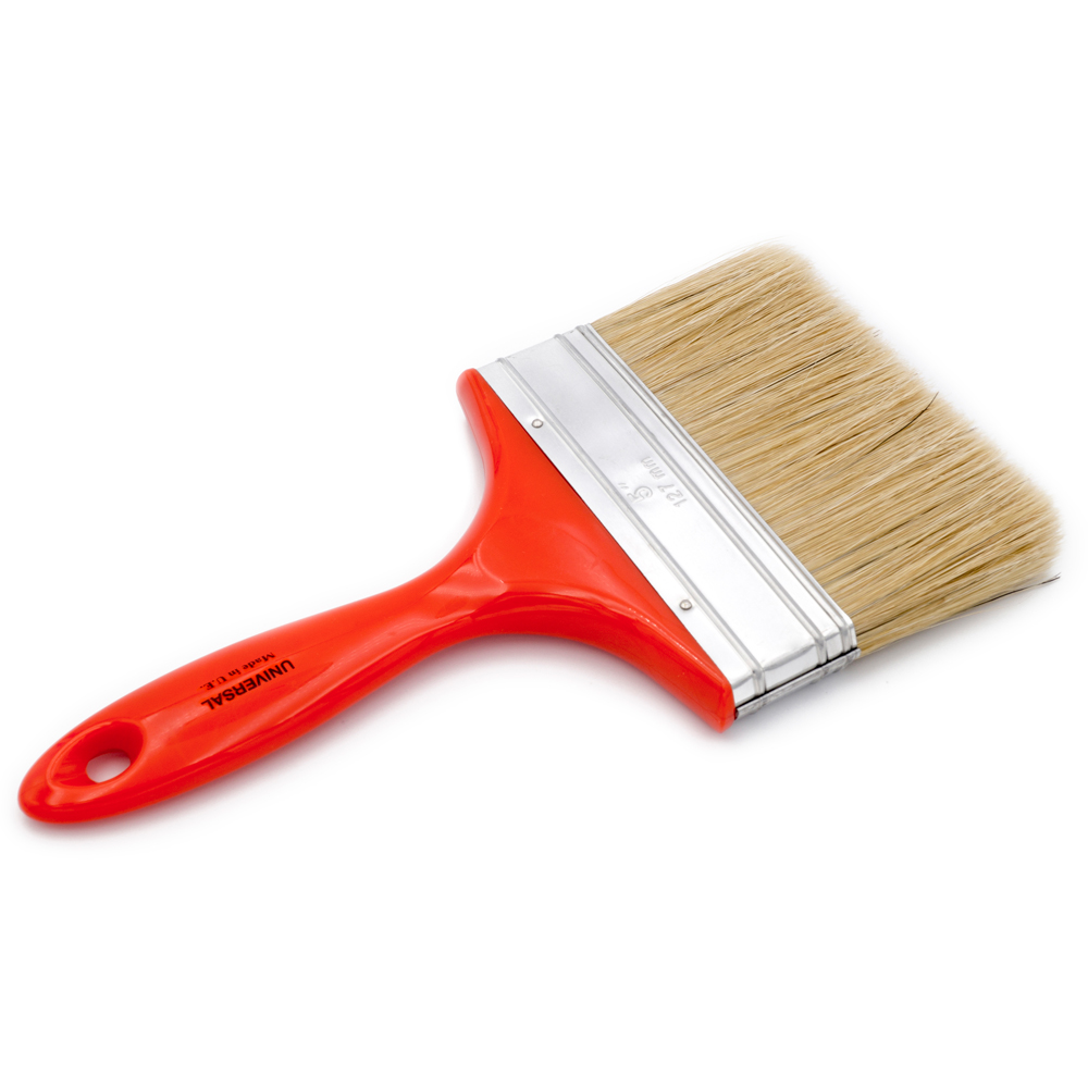 Paletina universal de gran formato (130 mm / Nº 5) con mango naranja ergonómico de alta visibilidad. Esta Herramienta está diseñada para cubrir grandes superficies con rapidez y eficiencia. Gracias a su ancho especial de 130mm, es el accesorio de PINTURA ideal para paramentos planos, fachadas y aplicaciones que requieren una alta carga de material en proyectos de BRICOLAJE y reforma.